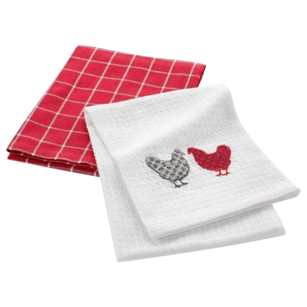Kitchen towel (Pck 2), cotton, white/red, 50x70 cm