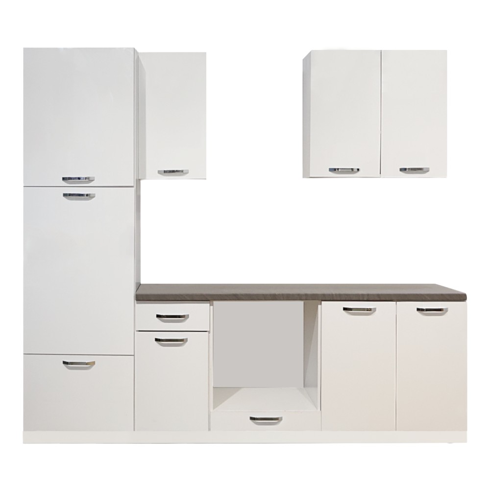 The Valdy kitchen is a product built from quality materials such as melamine and mdf, and has a clean look in white. It consists of the upper part measuring 180x31.8xH72 cm, the lower part measuring 180x60xH81.8 cm, the side part measuring 60x58xH217 cm and the cabinet measuring 180x60 cm. This kitchen is designed to provide sufficient space for cooking, food preparation and food service. In addition to functionality, it offers a stylized aesthetic that will easily fit into the interior design of your home. With enough drawers and cabinets for storing cooking utensils, food and kitchen equipment, this kitchen will be a great addition to your environment.