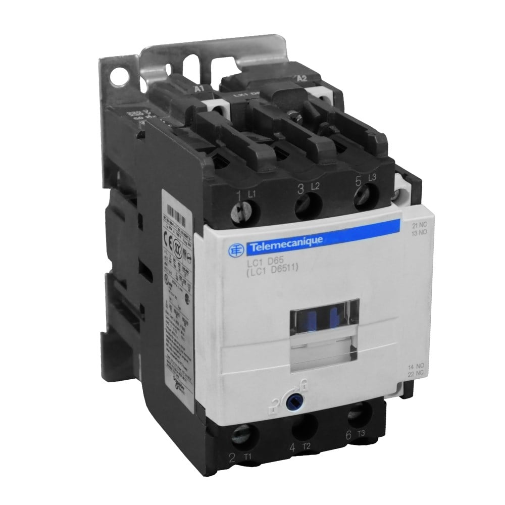 Contactors are electric switches used to lock and unlock different equipment from network.This is a contactor usable in alternative voltage (AC). His coil is 220V(but can be changed depending on the various specifics of the system).It has 3 poles with maximal power 37 kW and amperage 65A.