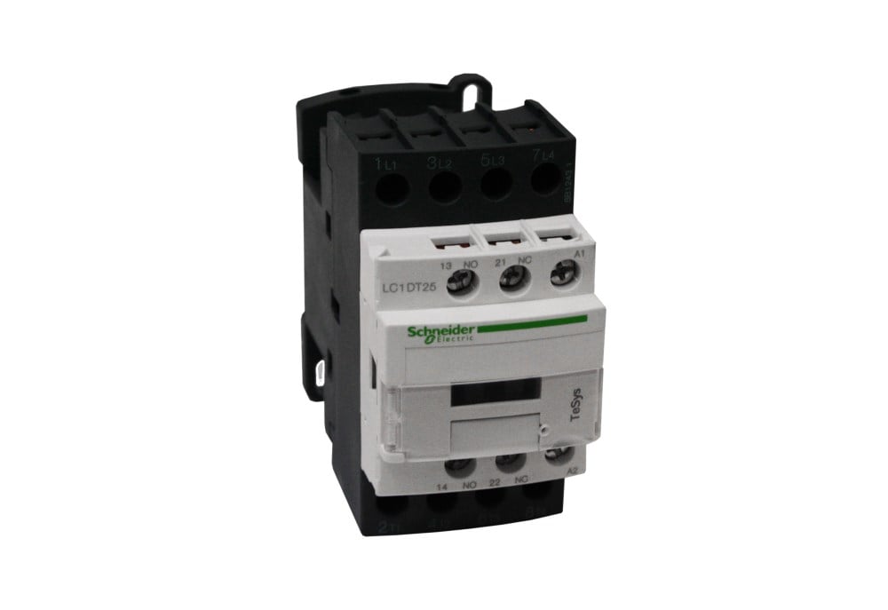 Contactors are electric switches used to lock and unlock different equipment from network.This is a contactor usable in alternative voltage (AC). His coil is 220V(but can be changed depending on the various specifics of the system).It has 3 poles with maximal power 17 kW and amperage 25A.