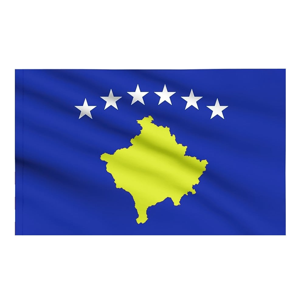 The flag of Kosovo is a powerful symbol of the independence and nationhood of Kosovo. The flag is decorated with a golden crescent moon and white stars that symbolize the unity of the people and the aspirations for a bright future. Its colors are blue and white, where blue represents peace and stability, while white is a symbol of purity and hope for a sustainable future. This flag is an important symbol in national events, holiday activities, and can be used to show pride in national identity.