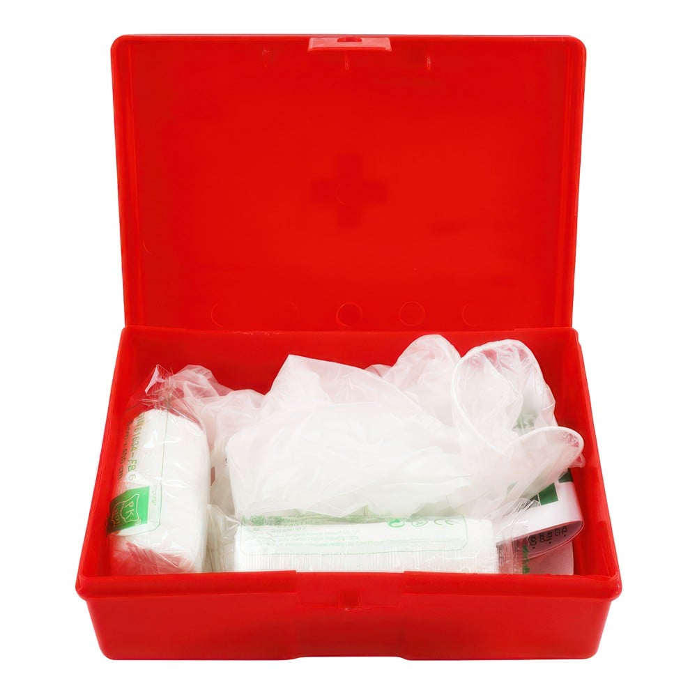 Ideal for repairing minor damages that may occur during accidents. Suitable for use in vehicles and buses.The box includes: Elastic bandage 4m x 6cm 1pc. Elastic bandage 4m x 8cm 1pc Gauze compress 5 x 5cm 1 pack Leukoplast 6 x 10cm 1pc. Vinyl gloves 2 pieces (1 pair) First aid instructions