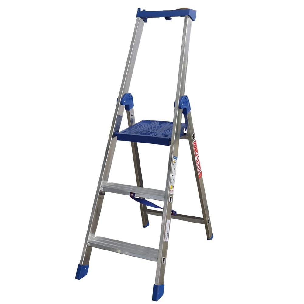 Aluminum stairs equipped with platform and guardrail. Ideal for family and professional use.The working height is 70 cm, while the total height of the ladder is 148 cm.