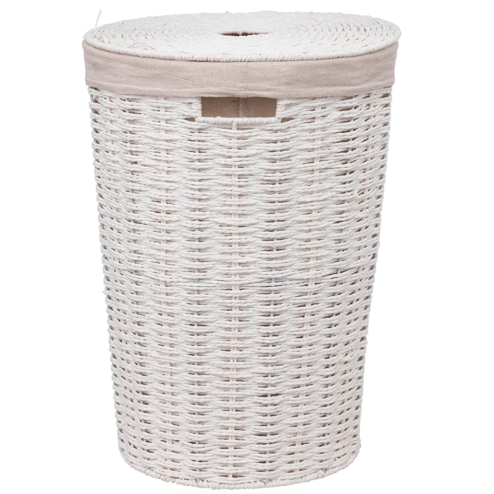 Laundry basket, Costa, circular, 35 l, with lid, fabric, white, 32x32xH58 cm