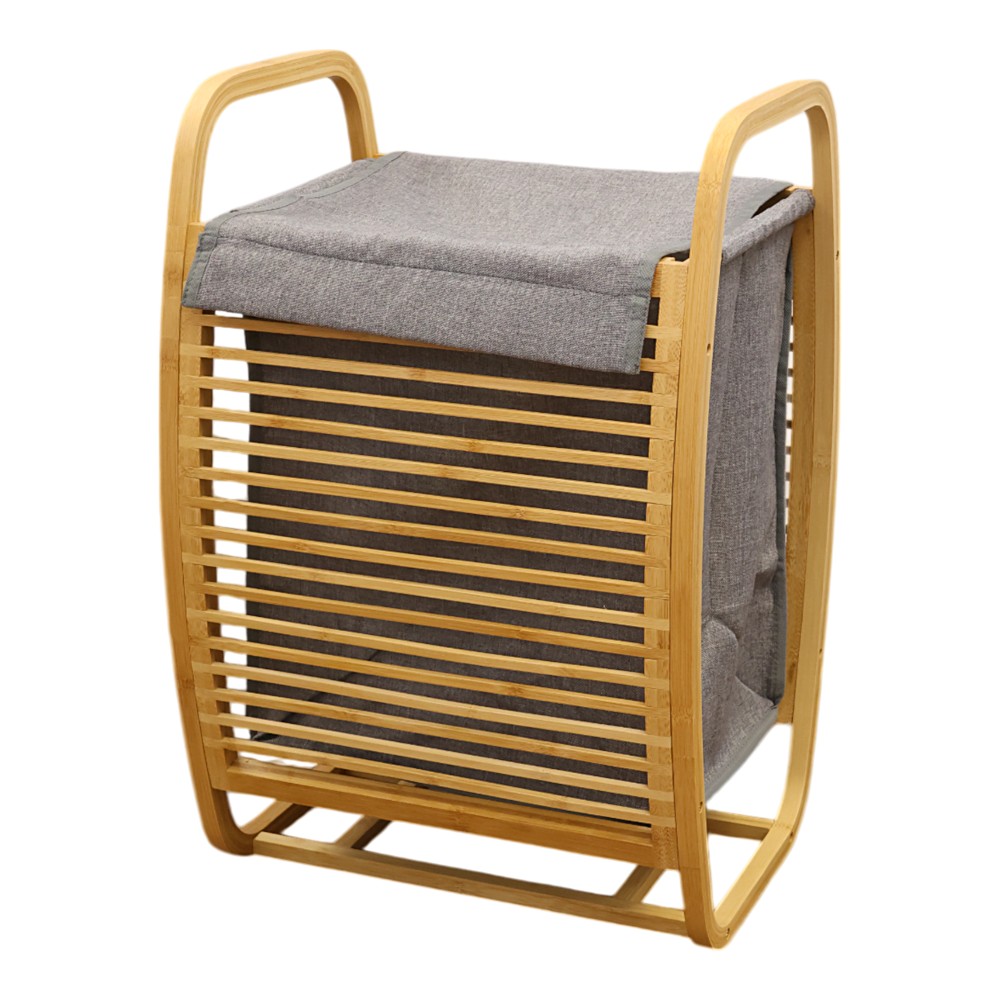 The "Narita" laundry basket with bamboo structure and fabric interior. Bamboo wood grows in areas with high humidity, a feature that makes this wood extremely resistant to moisture and bathroom steam. The natural wood color of the structure and the gray of the fabric will bring a fresh and modern style to your bathroom. With a capacity of 70 liters, it is more than enough for a family of 4 to 5 people. Equipped with 2 handles in the upper part for hanging towels but especially to simplify its movement. Dimensions, height 60.5 cm x length 40 cm x width 35 cm.