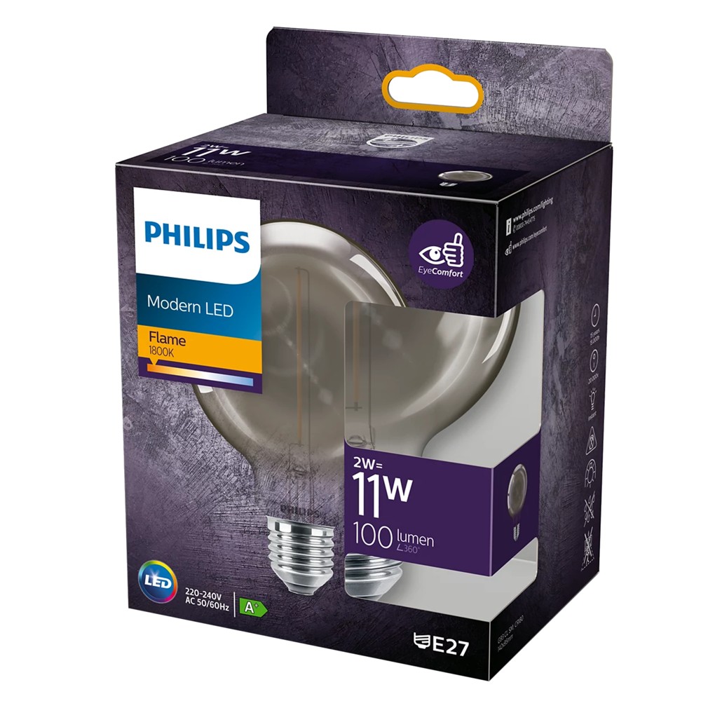 Led bulb classic, Philips, 11W, G93,E27, smoky ND RF 1PF. Low energy lighting with LED bulb,is ideal replacement for the traditional light bulbs.it has wide range of applications such as:Commercial lighting,restaurant, hotel,artwork lighting,display case,home and office lighting.