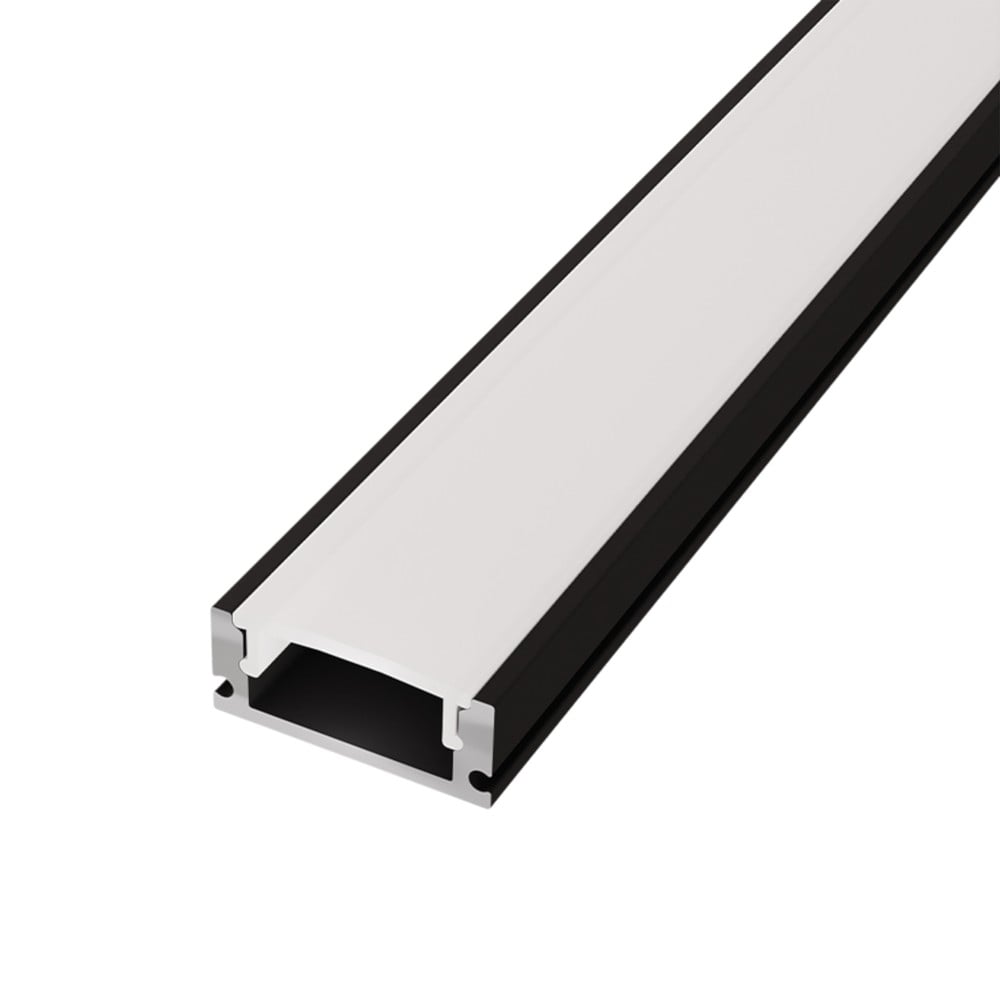LED strip channel, 2000x17x7mm, aluminum, black. The channel is very necessary for the LED strip as it helps it from overheating without damaging the strip or the risk of fire if used in a closet. It also makes the strip give a uniform lighting by eliminating visible LED spots.