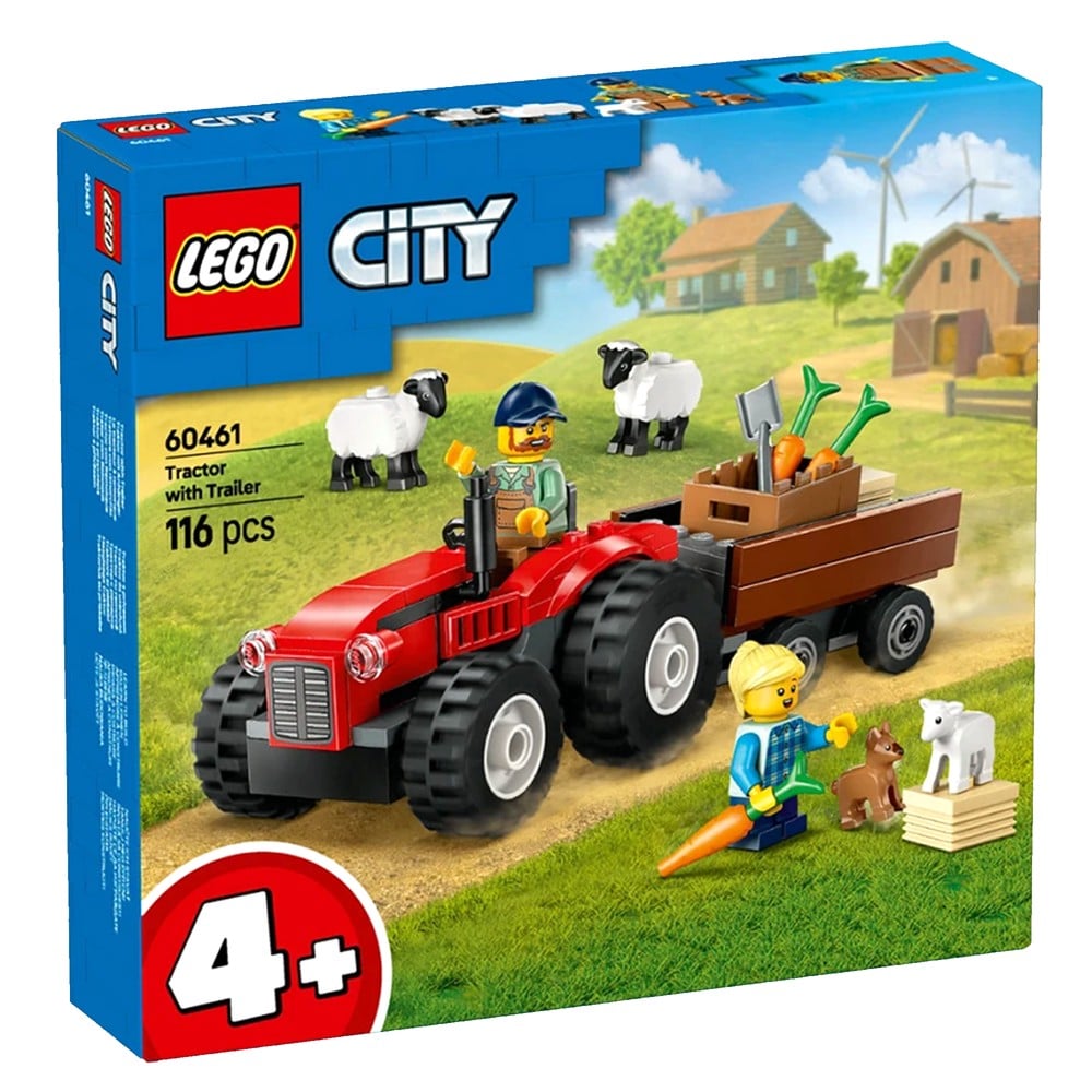 Lego blocks are made of plastic and are specially designed to connect together in a safe and durable way. The blocks are available in a wide range of colors and shapes, making them easy for children to build. The set includes the blocks for building the Tractor with Trailer.