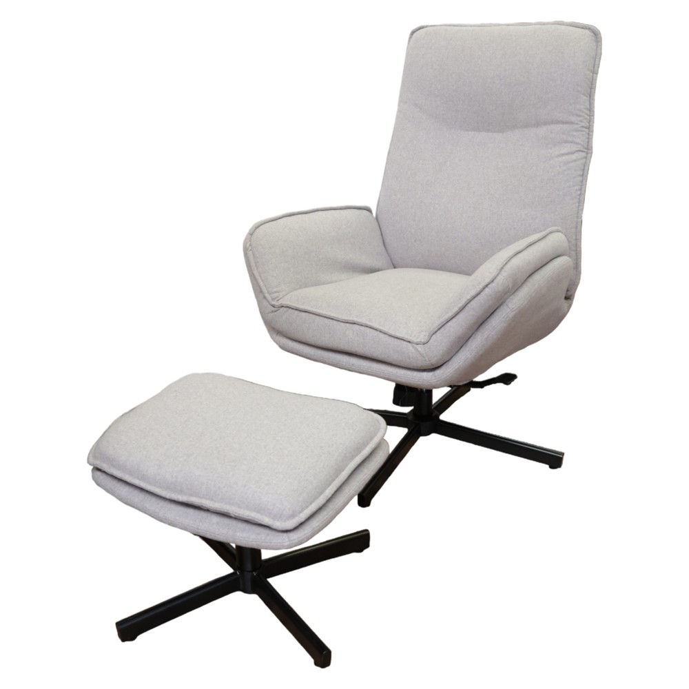 Leisure chair and pouffe, Vivi, textile upholstery, metal structure, light grey, 74x85xH104 cm