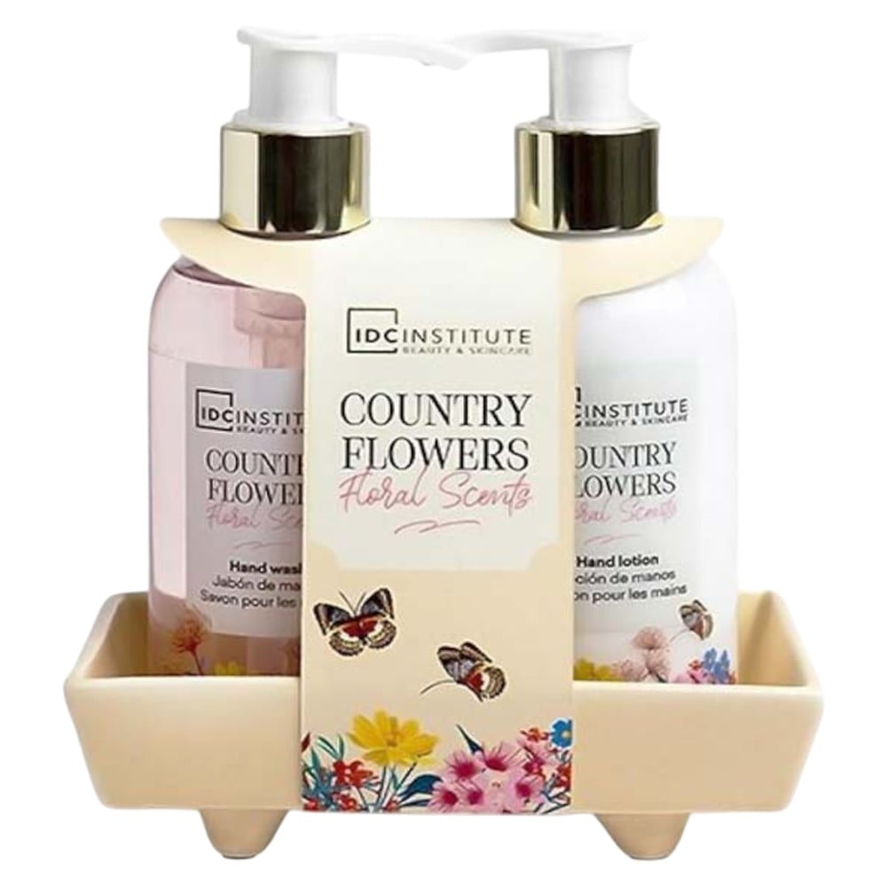 IDC Institute Liquid Hand Soap "Country Flowers" offers a fresh and fragrant hand care experience. The set includes 200 ml hand gel, 200 ml moisturizing hand lotion, and a soap holder. Ideal for everyday use , this set is perfect for keeping hands clean and soft.