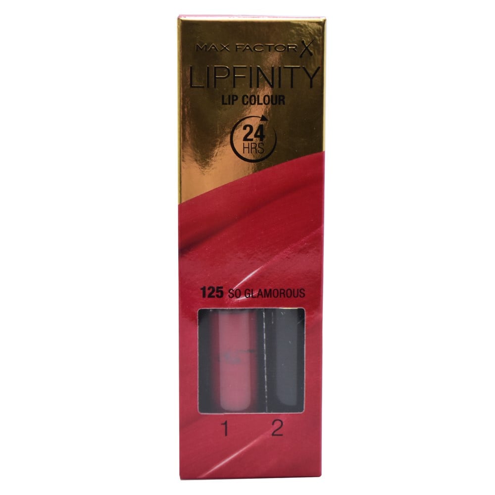 Makeup set of liquid lipstick, 125 So Glamorous, in scarlet red color, and moisturizing lip balm, in transparent color. The lipstick is equipped with a fine-tipped applicator and it is used to enhance the color of the lips and define the contours of the lips, with an effect that can last up to 24 hours. The moisturizing lip balm has a dermatologically tested hypoallergenic formula, which has a nourishing and soothing effect on the skin of the lips, and it can be applied after the liquid lipstick to protect the lip color and hydrate the lips. This product is lightweight and practical, it does not contain toxic ingredients that can be harmful to the skin and it is suitable for use on all skin types.