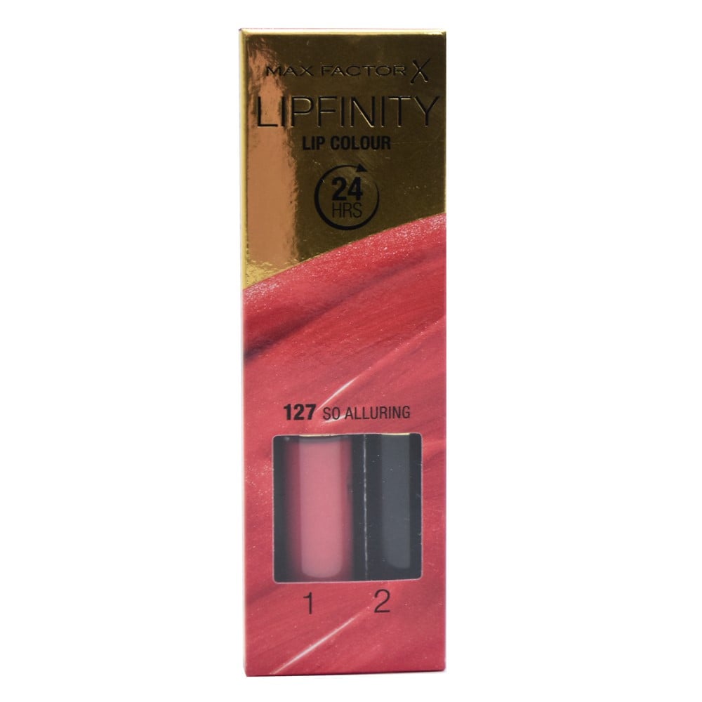 You're reviewing:Liquid lipstick and moisturizing balm set, 127 So Alluring, LipFinity, 2-step Long Lasting, Max Factor, plastic, 2.3 ml + 1.9 g, terracotta red, 2 pieces