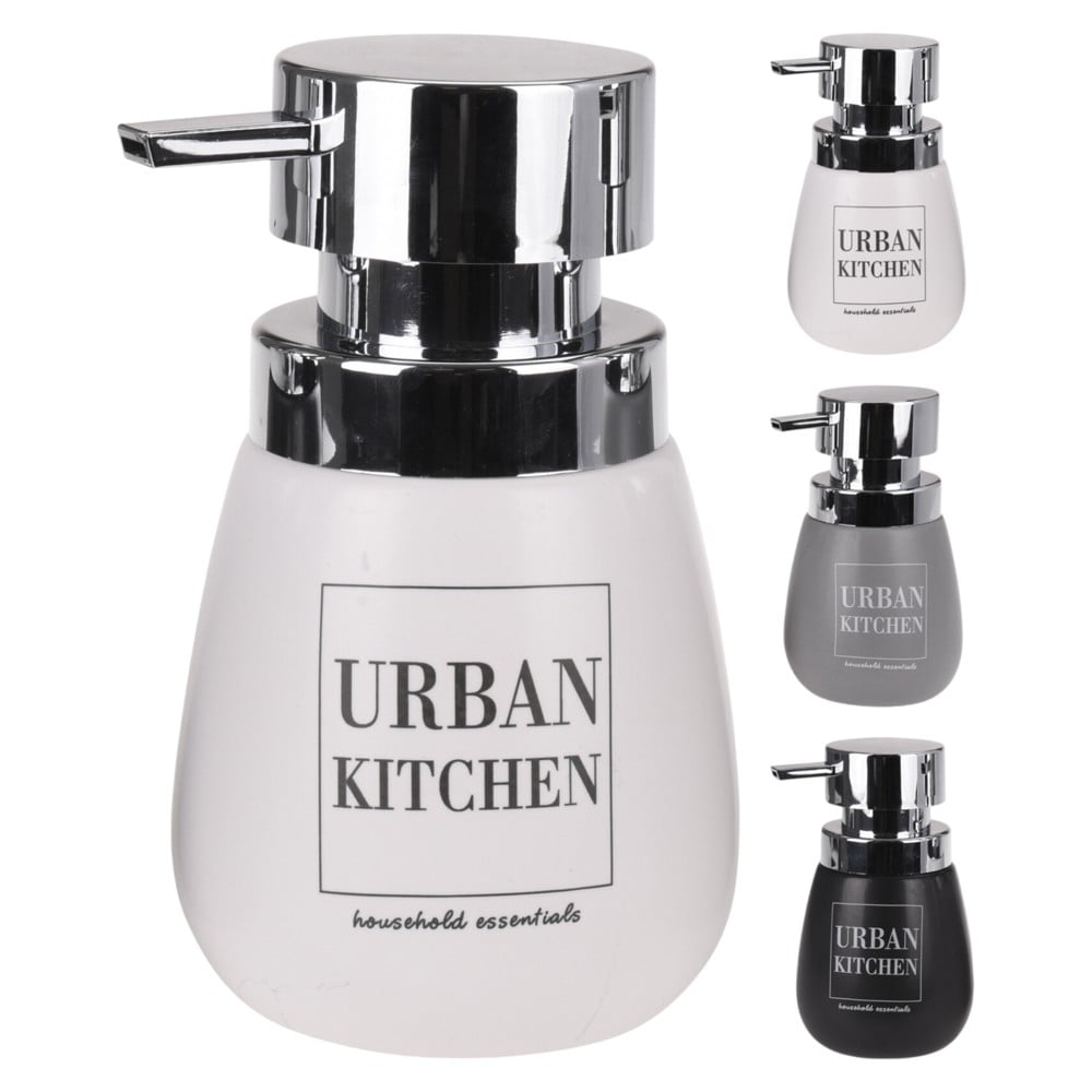 The "Urban Kitchen" liquid soap dispenser is designed in highly resistant dolomite material and in a matte finish, it adds liveliness and practicality to your toilet. Ideal for all types of furnishings with its variable colors. Dimensions, height 15 cm x diameter 8.5 cm.