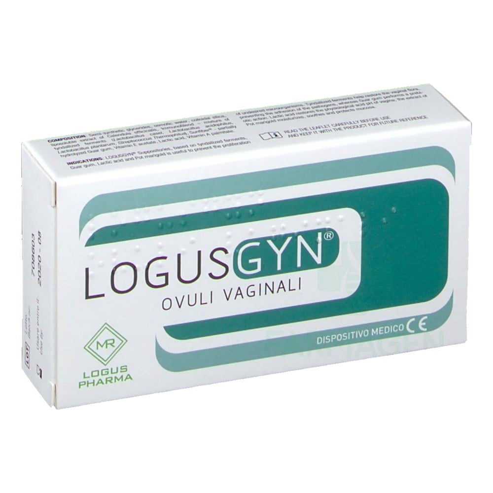 LogusGyn suppositories based on tyndallised ferments, Guar gum, lactic acid and pot marigold, which are useul to prevent the proliferation of undesired microorganisms. Tyndallised ferments help to restore the vaginal flora, while preventing the adhesion of the pathogens. Dosage: 1 suppositary a day, preferably in the evening, after washing the hands, bring the suppository gently and deeply into vagina, in order to favour its quick dissolution. It is advisable to use the product while lying down.