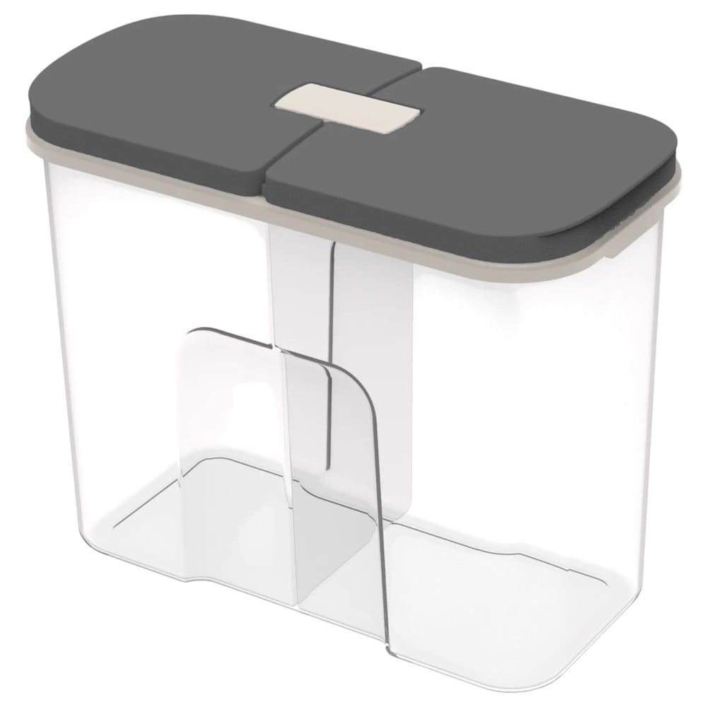 This is a practical storage container from the Luna series, specifically designed to store cereals, dried fruits, nuts, seeds, or other dry foods in an organized and fresh manner. Made from durable and food-safe plastic, this container has a transparent body that allows you to easily see the contents and food level. The main feature of this container is its design with 2 separate compartments. This enables you to store two different types of cereals, dried fruits, or other dry foods within the same container, keeping them separate and preventing them from mixing. This is particularly useful if you want to keep different breakfast cereals or different types of dried fruits for snacks. With a large capacity of 2100 ml, this container offers enough space to store significant quantities of dry food, helping to keep your kitchen organized and your food fresh for longer. This Luna 2-compartment storage container is an excellent solution for keeping your kitchen organized and your dry food fresh. Its practical design and large capacity make it a valuable addition to any home.