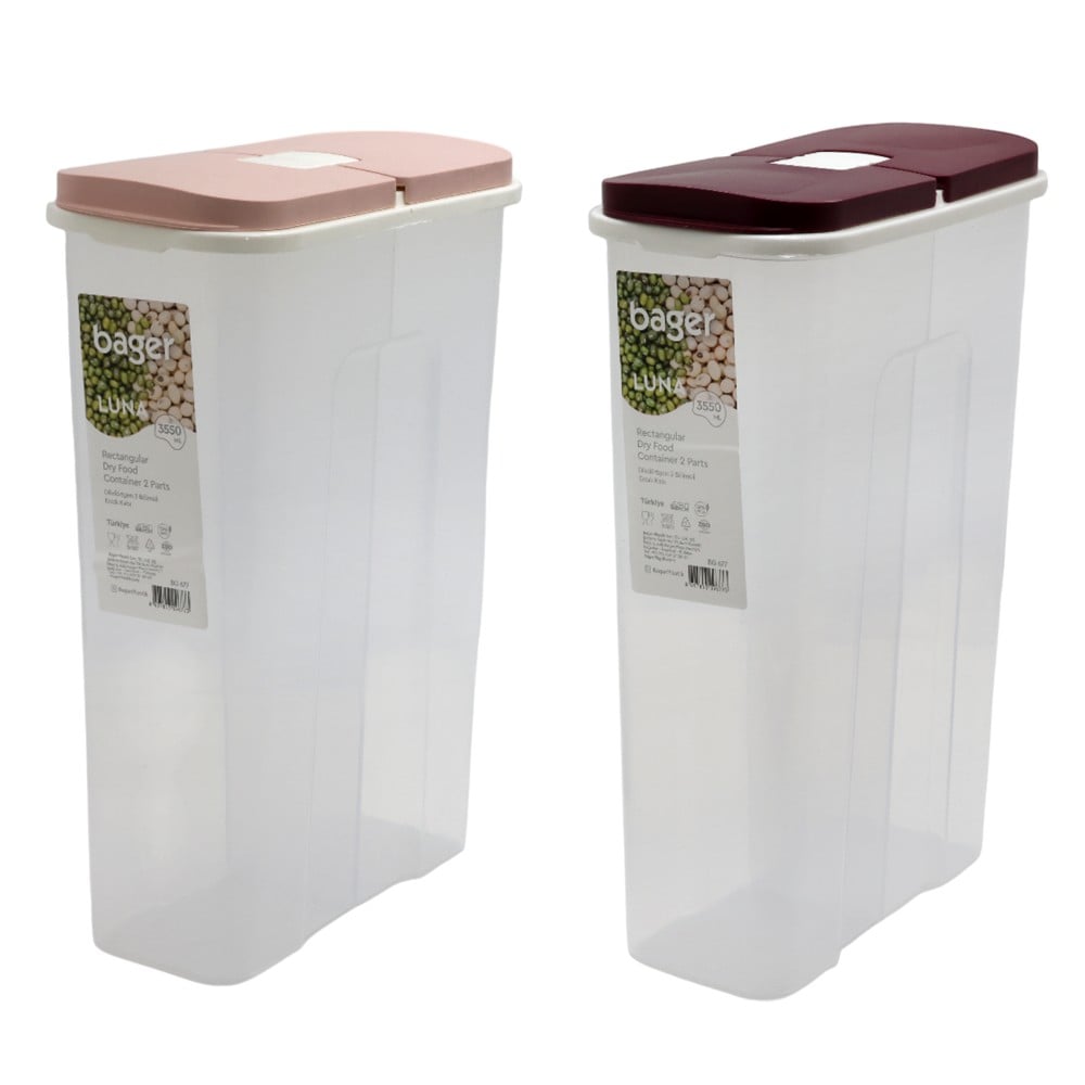 This is a practical storage container from the Luna series, specifically designed to store cereals, dried fruits, nuts, seeds, or other dry foods in an organized and fresh manner. Made from durable and food-safe plastic, this container has a transparent body that allows you to easily see the contents and food level. The main feature of this container is its design with 2 separate compartments. This enables you to store two different types of cereals, dried fruits, or other dry foods within the same container, keeping them separate and preventing them from mixing. This is particularly useful if you want to keep different breakfast cereals or different types of dried fruits for snacks. With a large capacity of 3550 ml, this container offers enough space to store significant quantities of dry food, helping to keep your kitchen organized and your food fresh for longer. This Luna 2-compartment storage container is an excellent solution for keeping your kitchen organized and your dry food fresh. Its practical design and large capacity make it a valuable addition to any home.