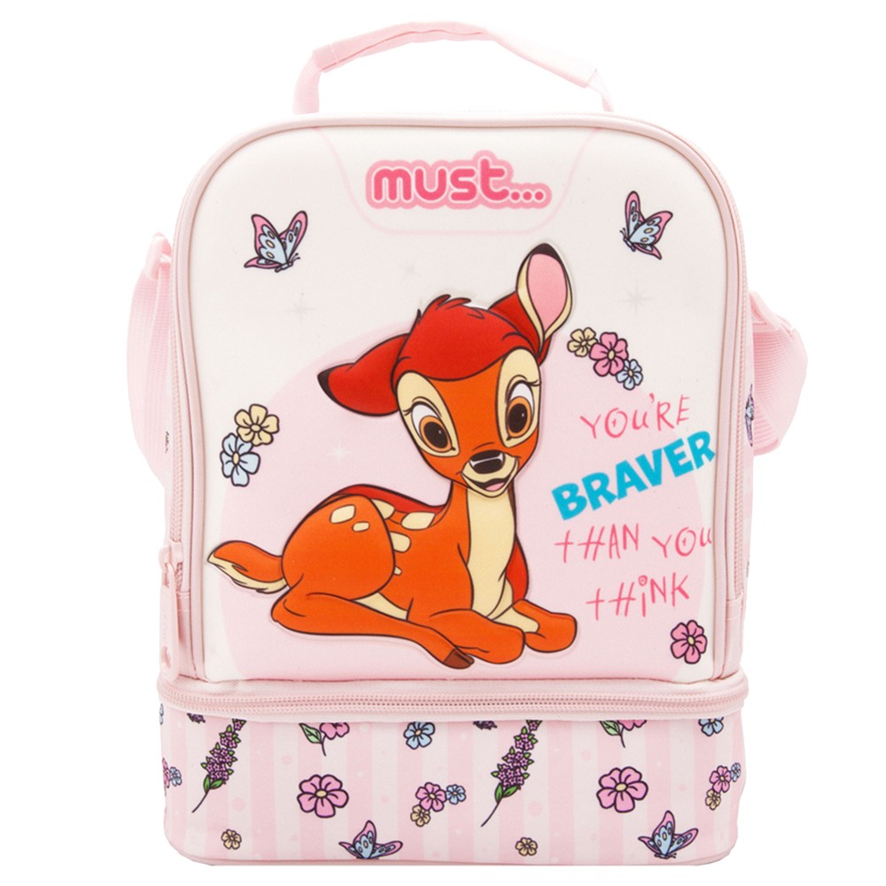 Children's lunch bag, equipped with two compartments for placing food, with inner layer made of aluminum material, which isolates the temperature and preserves food for a long time. The bag is equipped with a strap of adjustable length, which facilitates carrying during transportation.