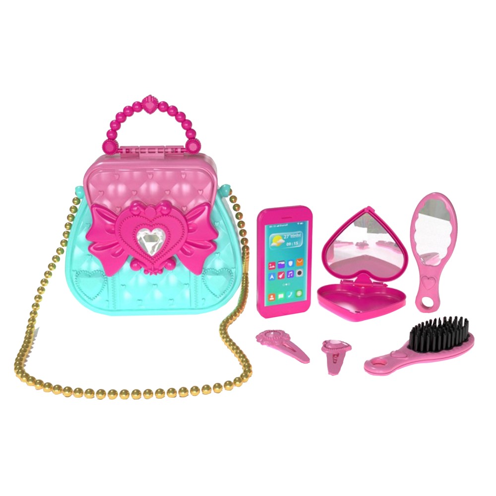 Makeup accessories bag set, which contains 4 makeup accessories, made of plastic material, in different colors. This toy helps develop motor skills and learning skills, and stimulates the development of imagination and creativity in children. The constituent material and the paint have no toxic or harmful composition for children and the product is certified for children's safety. This product is suitable for use by children over 3 years old.