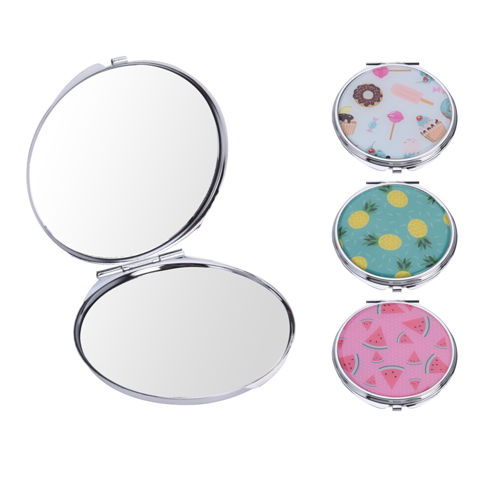 Makeup pocket mirror, with 2 foldable sides, with a structure made of ABS plastic and metal material, in different colors and designs, in a round shape, with dimensions of Ø7 cm. The foldable sides allow a better view of the face and better makeup results. It can be taken anywhere with you thanks to its small size. This product is suitable for personal use for face care and makeup.