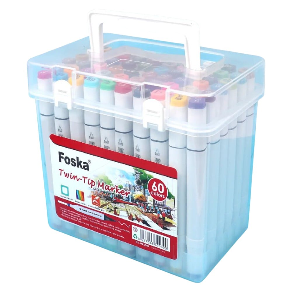 Express your creativity to the fullest with the professional Foska alcohol ink marker set. This set contains 60 rich and long-lasting colors, ideal for drawing, graphic design, illustration or creative work. Each marker has two functional tips – a thick (7 mm) for quick filling and a thin (1 mm) for precise details, giving you complete flexibility in any project.
