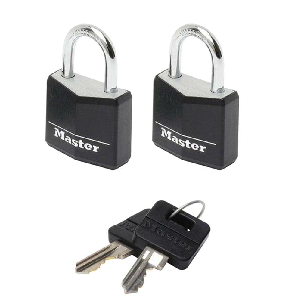 Masterlock padlock, Security level 3, 2 x 20mm aluminium padlocks - 11mm steel shackle, 3mm diameter - 3 pins - keyed alike- black finish, Luggage