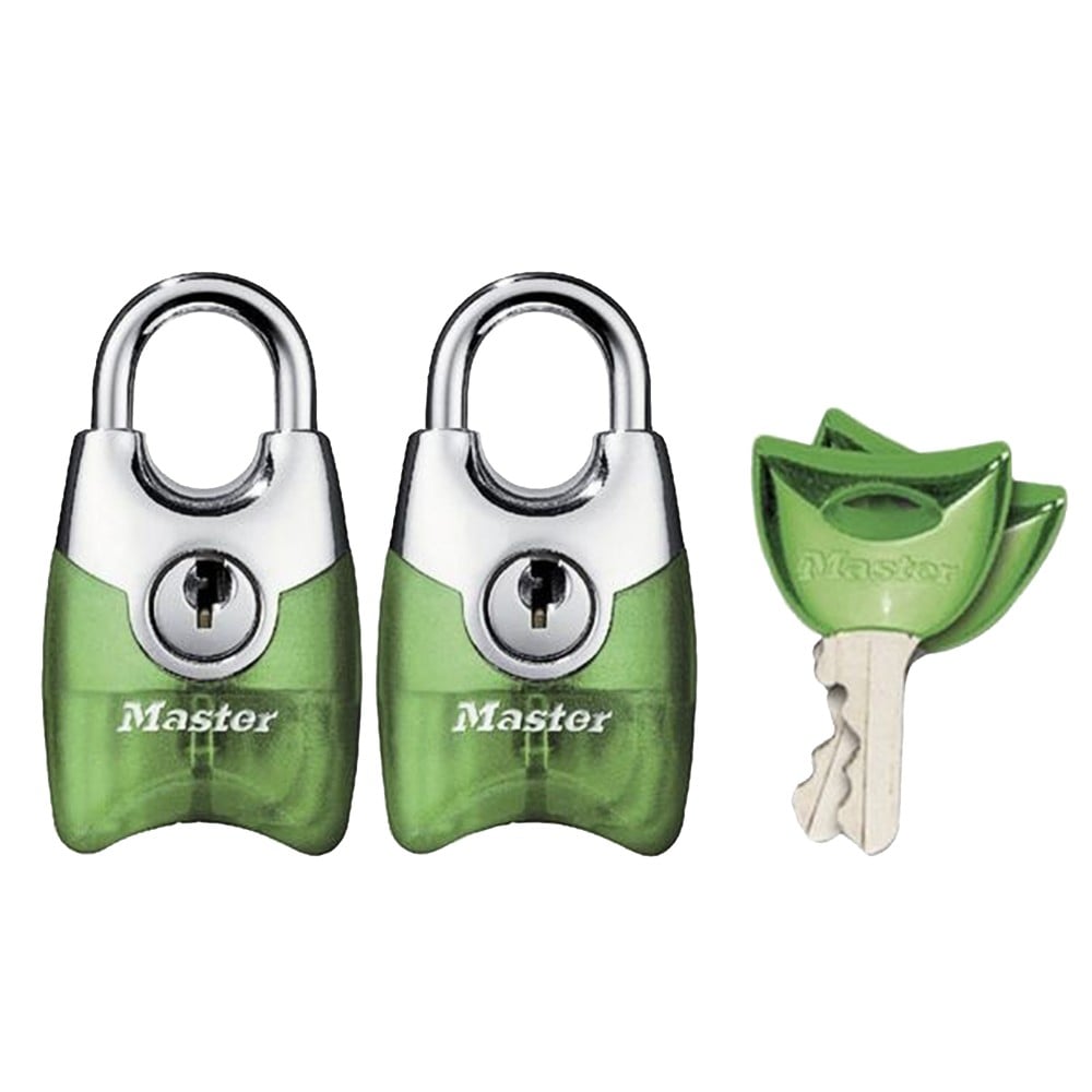 Masterlock padlock, Security level 3, 2 x 20mm - lexan & chrome plated zinc body - 10mm steel shackle, 3mm diam. - key retaining - front access key green - 2 same colours / single pc, Luggage
