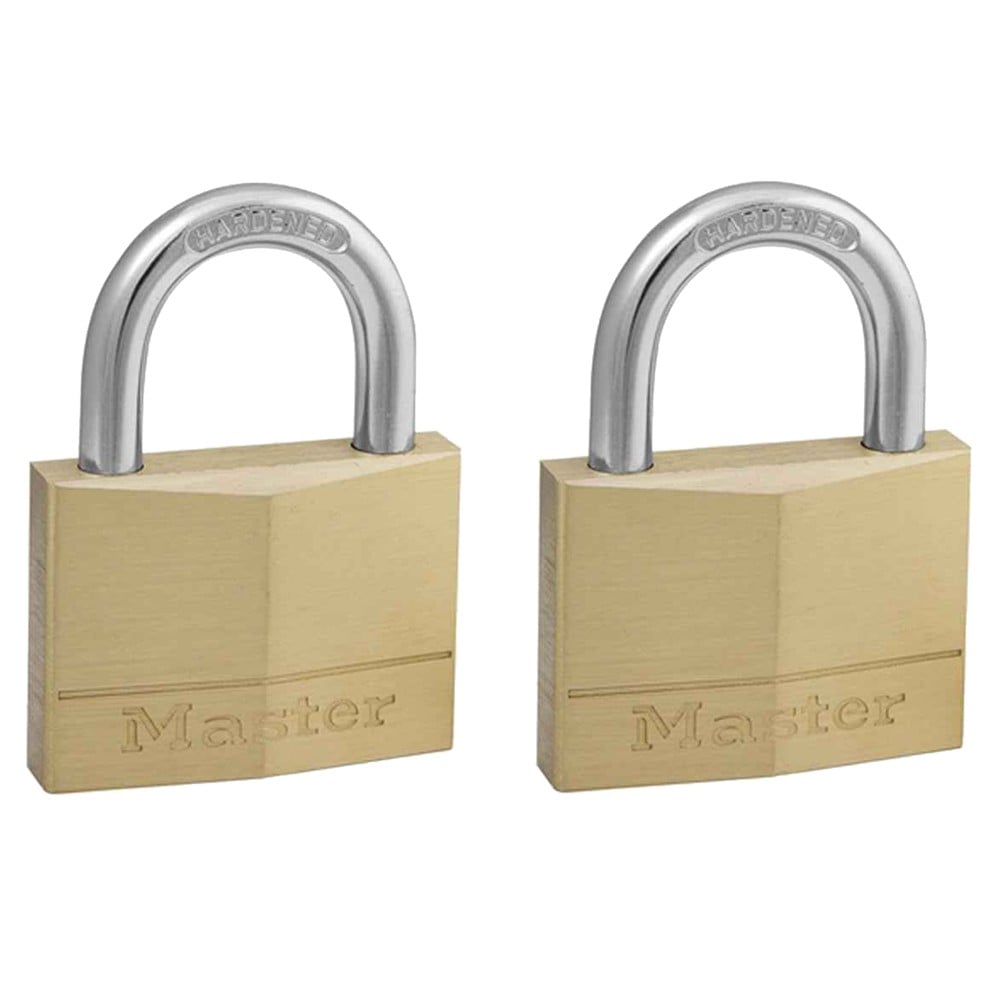 Masterlock padlock, Security level 5, 2 x 50mm brass padlocks - 25mm hardened steel shackle, diam. 7mm - 5 pins - keyed alike, Outdoor