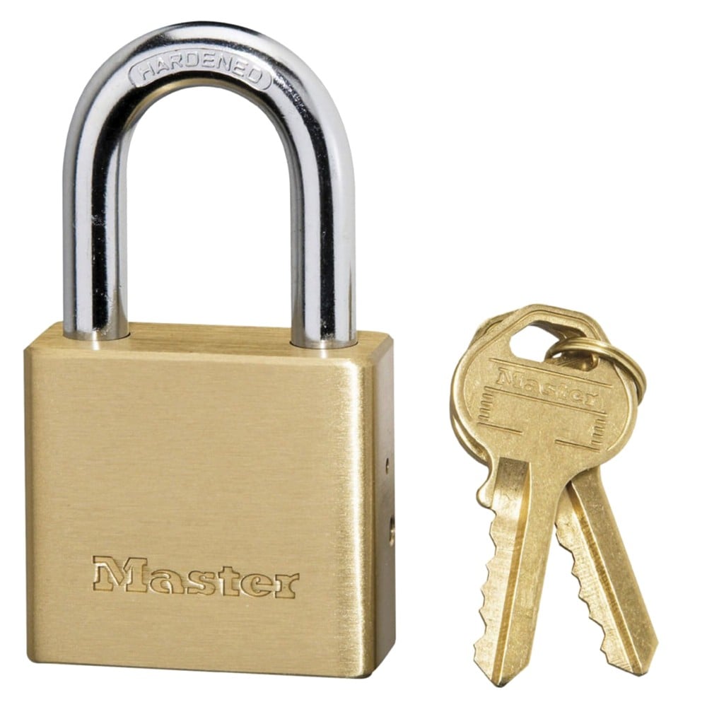Masterlock padlock, Security level 6, 38mm wide brass body padlock - 24mm shackle, 7mm diam. - thick solid brass body - 5-pin cylinder - double locking mechanism - 4 keys, Outdoor