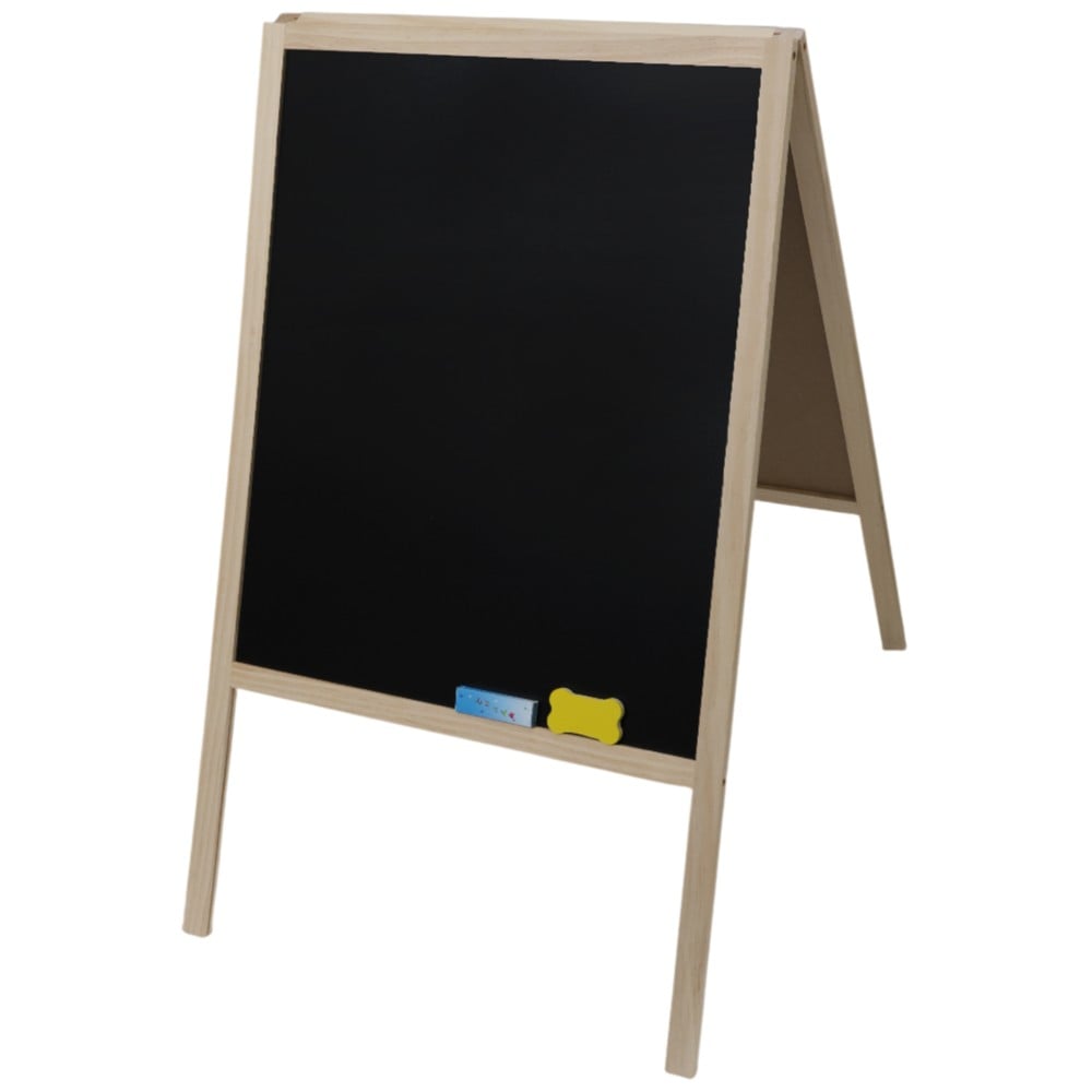 This wooden menu board is ideal for presenting offers, menus or announcements in a practical and elegant way. With a double-sided design, it offers double the writing space, making it perfect for restaurants, cafes, bars or shops. The smooth black surface allows for clear chalk writing and easy erasing without leaving marks, while the wooden structure gives it a natural and attractive look. With dimensions of 50x90 cm, it is compact and easy to place anywhere.