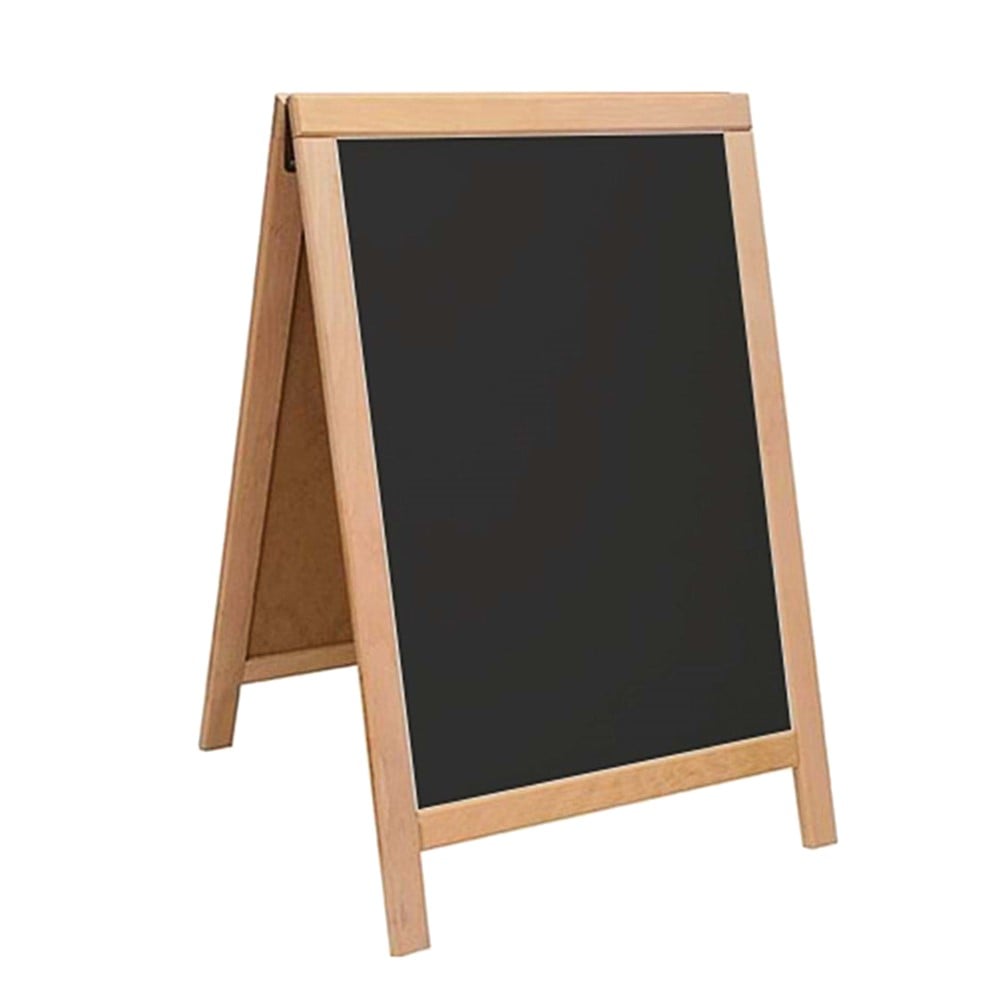 Two-sided menu chalkboard, with a frame made of wooden material, with dimensions of 40x55 cm, which is suitable for writing with chalk. This menu chalkboard can be used by bars and restaurants to write various menus and daily offers, or it can be placed in large restaurants' hallways to display the guest list for a particular hall. This product is suitable for use by hotels, bars, restaurants, pizzerias, fast-food restaurants, etc.