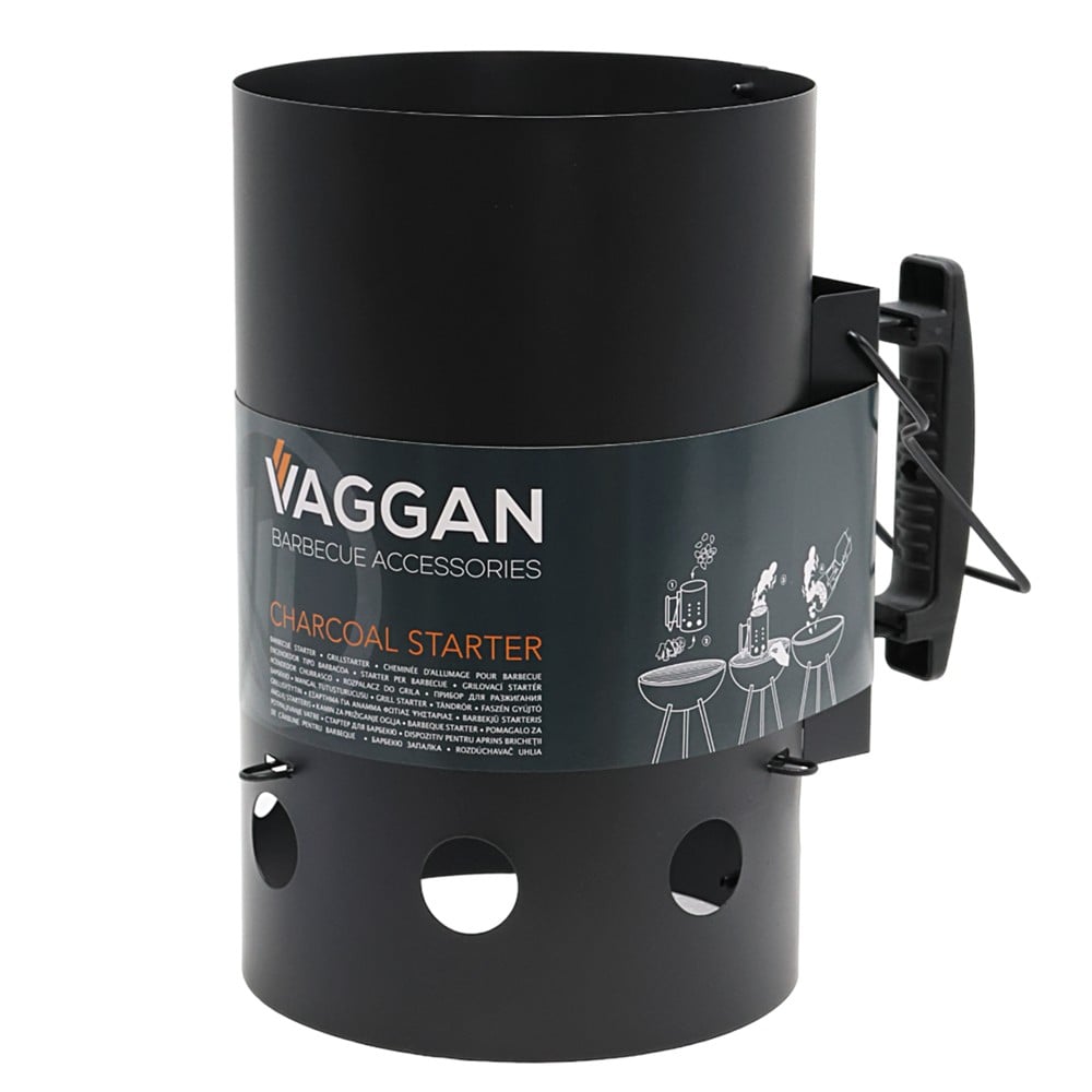 Firelighter, made of stainless steel material in the shape of a cylinder. It is used by placing the volcanic stone or coal inside for a few minutes after the coal is lit and when it has become all red, it is ready to be transferred to the barbecue.