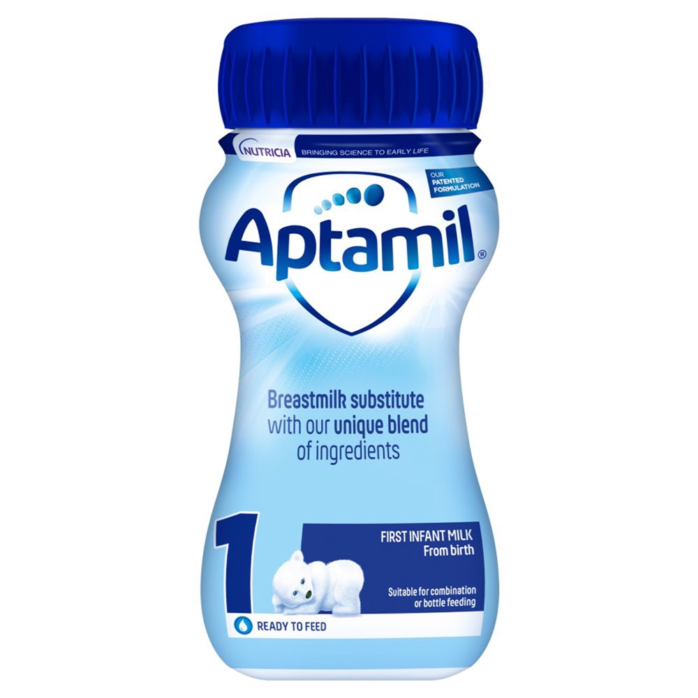 Liquid milk Aptamil, with a quantity of 200 ml, with vitamin D to support the normal function of the immune system. It has a sterile, safe and practical packaging. Contains water, lactose (from milk), vegetable oils, soy lecithin, fish oil, calcium phosphate, potassium chloride, potassium citrate, potassium hydroxide, sodium citrate, inositol, magnesium chloride, L-carnitine, pantothenic acid, antioxidant, nicotinamide , calcium carbonate, contains Vitamins (B2, B1, B6, A, E, C, D3), folic acid, biotin, GOS, etc. This product can be used for babies aged 0-6 months. Before you decide to supplement or replace breast feeding with this product, consult your doctor!