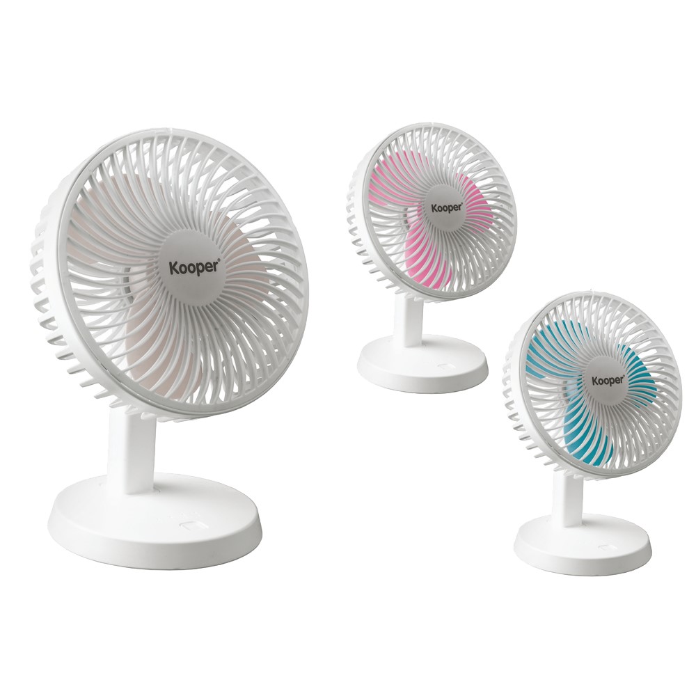 Mini table fan with DC 5 V - 800 mAh rechargeable battery included Plastic Light and silent 3 speeds Equipped with USB cable for charging Adjustable tilt Stable base Protective grille Power supply: 5 V Power supply: 4.2 W Measurements: ¥ 13 xl. 17 x h. 22 cm Available in 3 assorted colors: white pink blades white gray blades white saltwater blades