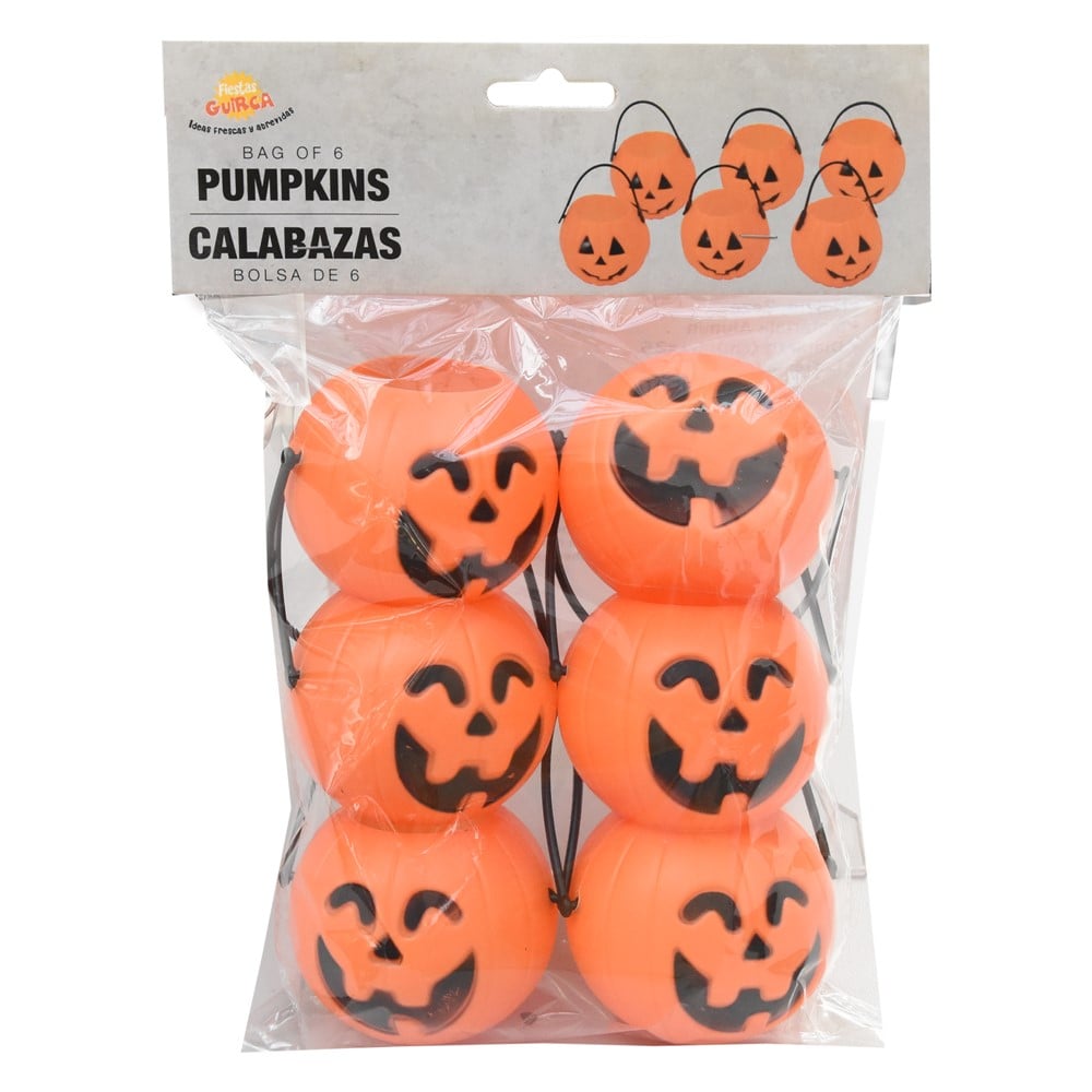 Plastic pumpkin. 6 plastic squash with hanging, 7 cm high, perfect for decorating the table and to be filled with candy.