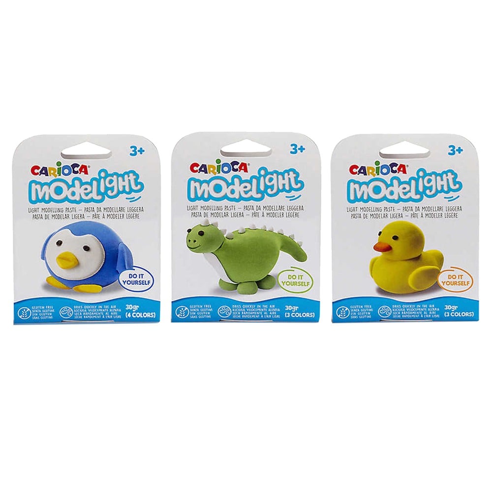 Modelling paste, in assorted colors, with non-toxic, gluten-free play dough composition, that is not harmful to children. It is used to create different animal shapes, for play, for school projects or for other artistic works, and it also dries quickly in the air. This product is suitable for use by children over 3 years old.