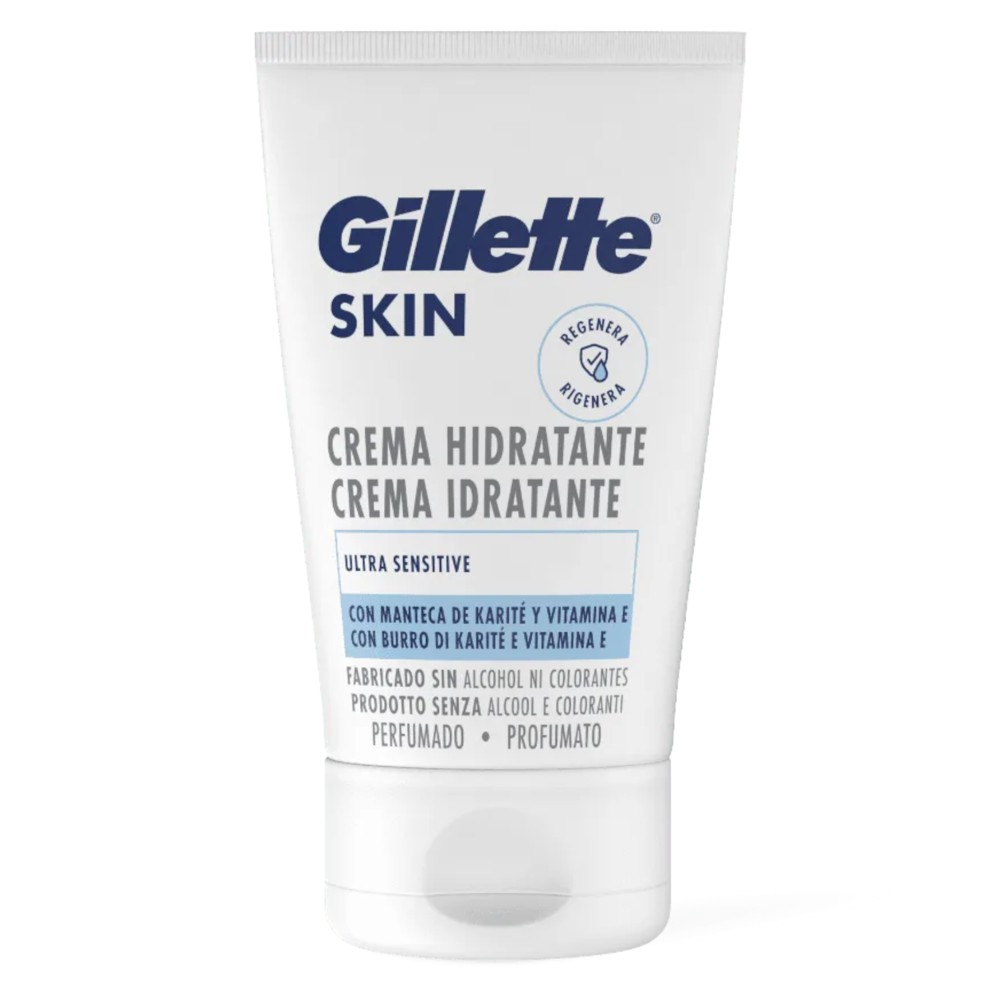 Designed for the most sensitive skin prone to post-shave irritation, Gillette SKIN Ultra Sensitive Moisturizing Cream for Men provides intense hydration, strengthening the skin's natural barriers. Its lightweight formula based on shea butter and vitamin E is non-sticky and quickly absorbed, leaving the skin soft and hydrated. Paraben-free, dye-free and alcohol-free, for gentle hydration.