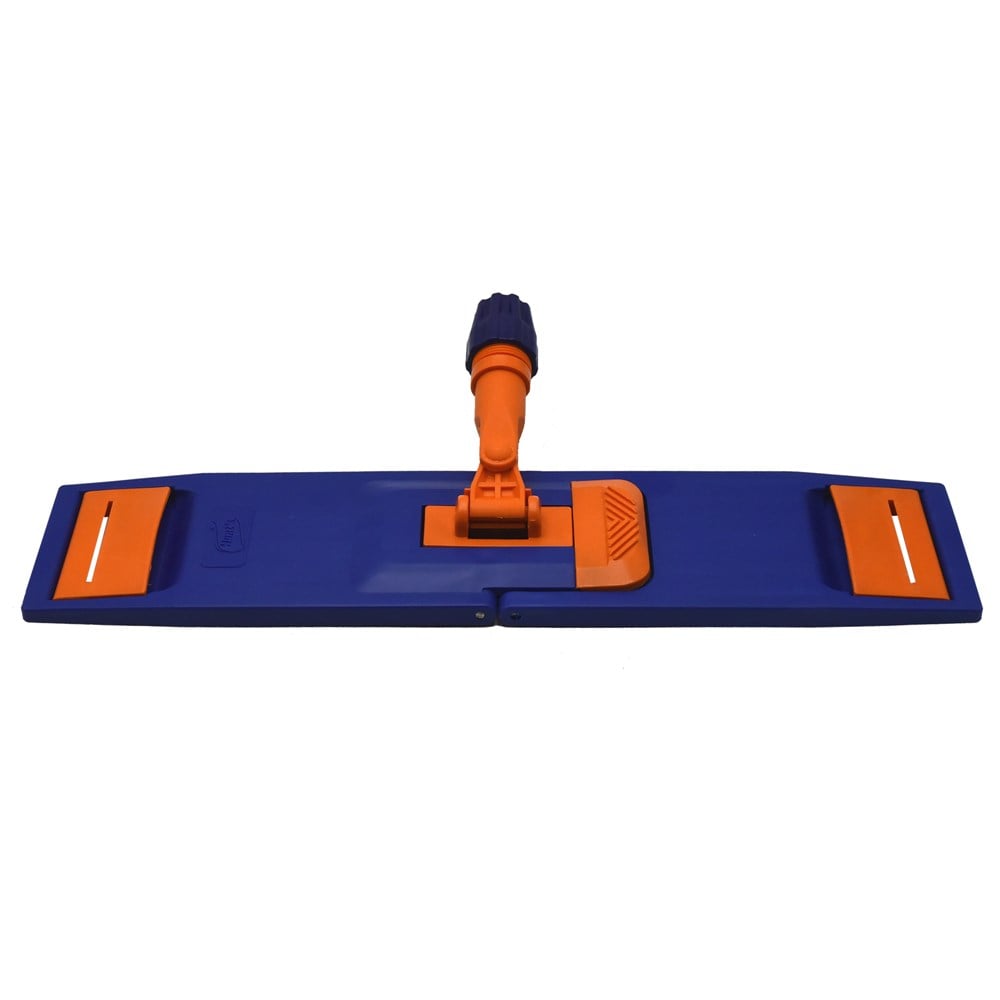 Plastic mop holder 50 cm. This mop holder is manufactured by an Italian brand of hard plastic. Quick and easy to operate with a tilt mechanism and pedal lock. Can be used with both tabs and pockets. The holder is fitted with 2 side pedals which press through to open the mop and close again when the mop is installed. Its mop fits the mop of the same size as the holder. The mops are fitted with side ears that cling to both brake pedals. The holder also has a stick mounting part which is screwed to fit the rods. Wood and metal sticks are suggested for strong durability. Color: blue-red