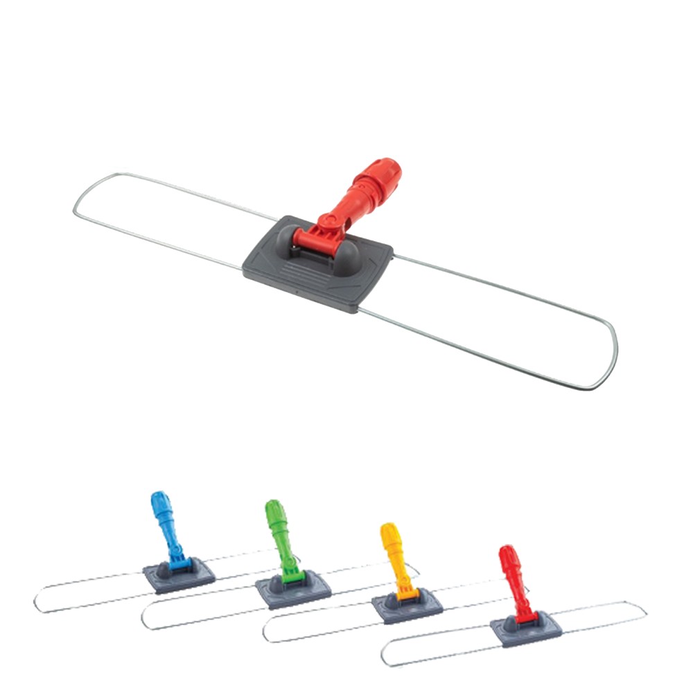 Support frame for floor mop, polypropylene base and iron frame, which ensures a good cleaning performance. It allows a 360° rotation which reaches every difficult angle.