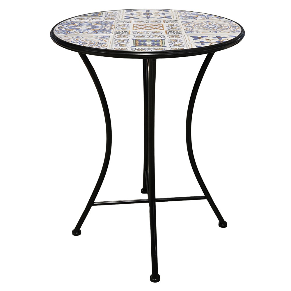 You're reviewing:Mosaic table, metal/ceramic, black frame, white/blue top, D60xH75 cm