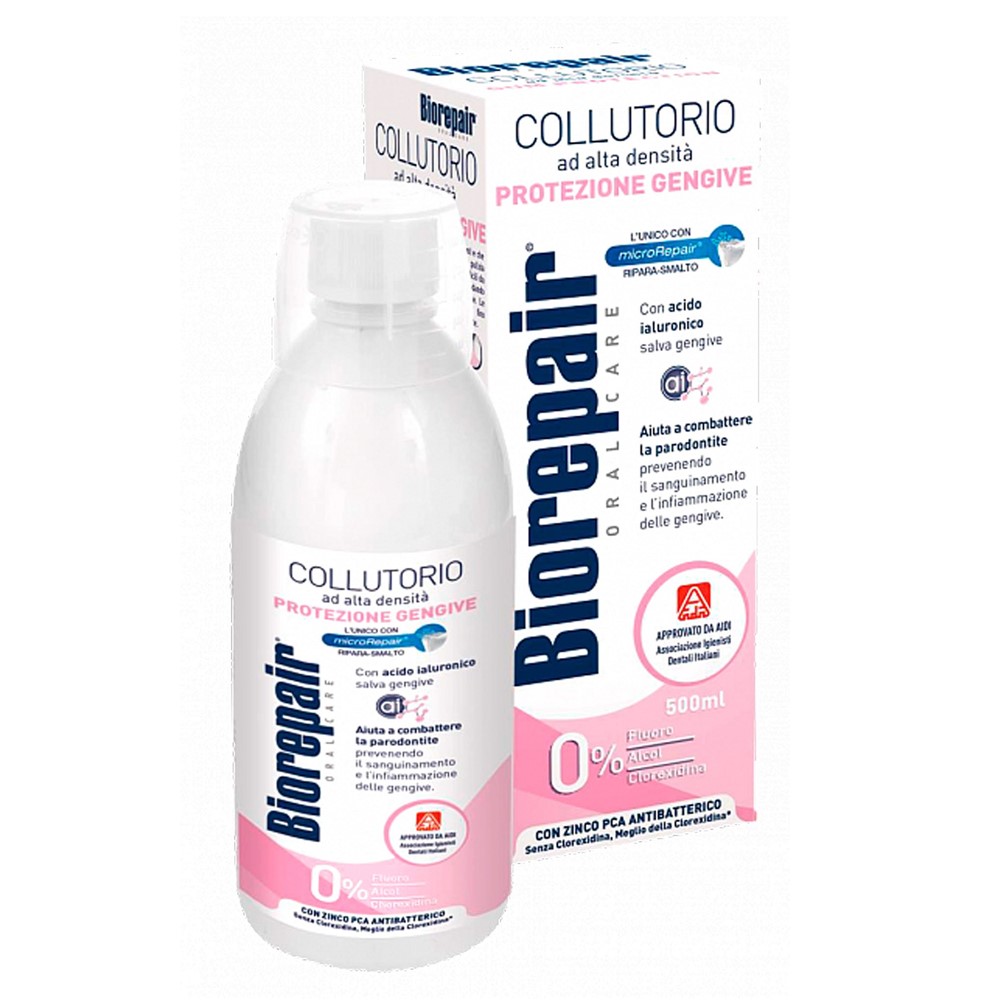 Mouthwash for gum protection, with repair micro-molecules, hyaluronic acid and high-density formula, which does not contain alcohol, fluoride or chlorhexidine. it is used to clean the mouth from impurities and bacteria and prevent gum damage, and it helps fight parodontitis. This product is suitable for daily use.
