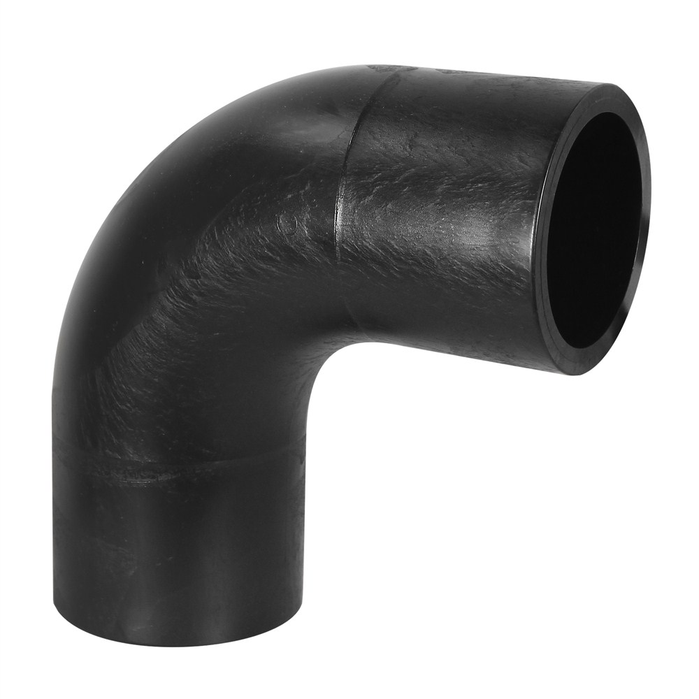 Elbow long spigot HDPE Ø 63mm with angle 90° used widely today in Europe for angular lines installations of water supply infrastructure and lines for the transport of natural gas. The elbow mounted by the method Butt-fusion. Elbow enables network returns 90° angle. For welding HDPE pipe with elbow used welding heat machinery which makes it possible merger of elbow pages and pipe and through pressure enables their union. Manufactured with European standards, resistant to corrosive materials, high resistance to deformation of land and resistant to pressure up to 16 Bar.