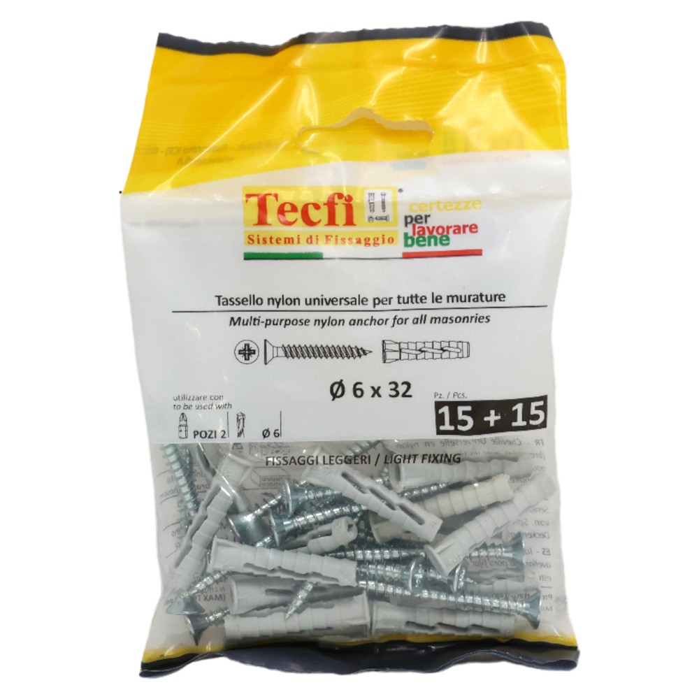 You're reviewing:Multi-purp.rim.Nylon anchor w/flat CSK hd. screw zp, Ø 6x32mm, Bag 15