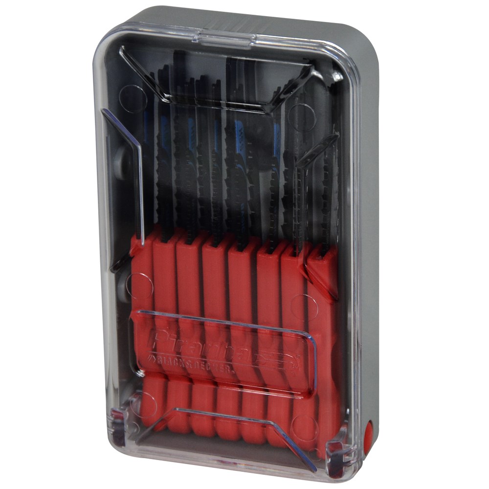 A 16 piece Piranha multi-purpose U shank jigsaw blade Set. Ideal for general jigsaw applications. Compatible with all major power tool brands. U Shank fitting. Long life blades. Set contains: 2 x HCS Fine wood 30mm blades, 2 x HCS Speed wood blades 60mm, 2 x HCS Basic wood blades 60mm, 2 x HCS Precision wood blades 20mm, 2 x HCS Clean wood blades 40mm, 2 x HSS Fine metal blades 0.8-2mm, 2 x HSS Basic metal blades 1.5-4mm, 2 x HSS Medium metal blades 2.5-6mm.
