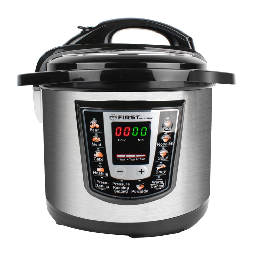 This pressure cooker is a useful helper in every kitchen. With automatic programmes and 1000 watts, you can easily prepare vegetables, meat or rice and keep them warm. With a pressure safety valve and heat-insulating handles, the pressure cooker ensures safe and quick cooking at the same time.With a capacity of 6 litres, the Schellkochtopf has a removable, easy-to-clean and non-stick coated inner pot, a measuring cup and a rice spoon. The non-slip pressure cooker is therefore ideally suited for the home kitchen, garden shed, camping or on the go.