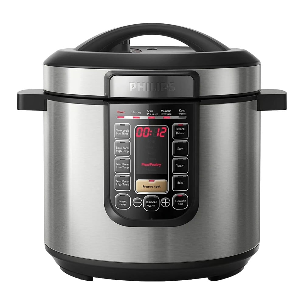 All-in-One Multicooker. The upgraded power efficiently shortens pre-heat time. Together with the intelligent cooking system, you can slow cook, pressure cook and multi cook delicious meals in one machine with ease. Additional multi cook programs including steaming, baking and yoghurt making to create even more dishes and desserts. Automatic keep warm for 12 hours (except for yoghurt and Saute/Sear functions), keeping meals nice and warm to serve anytime. The upgraded power efficiently shortens pre-heat time by 25%, so that you can enjoy even faster-cooking experience*. Slow cook with high and low-temperature settings creates tenderness. 7 pressure cooking modes help you to create great taste when you are time-poor. With ProCeramic+ coating, the pot is 5 times more durable than conventional ones. Better scratch-resistant surface for longer use*. Easy-to-clean detachable inner lid design. 9 safety protection systems to ensure tension-free cooking. Saute/Sear to enhance the richness of flavours before the magic of cooking begins.