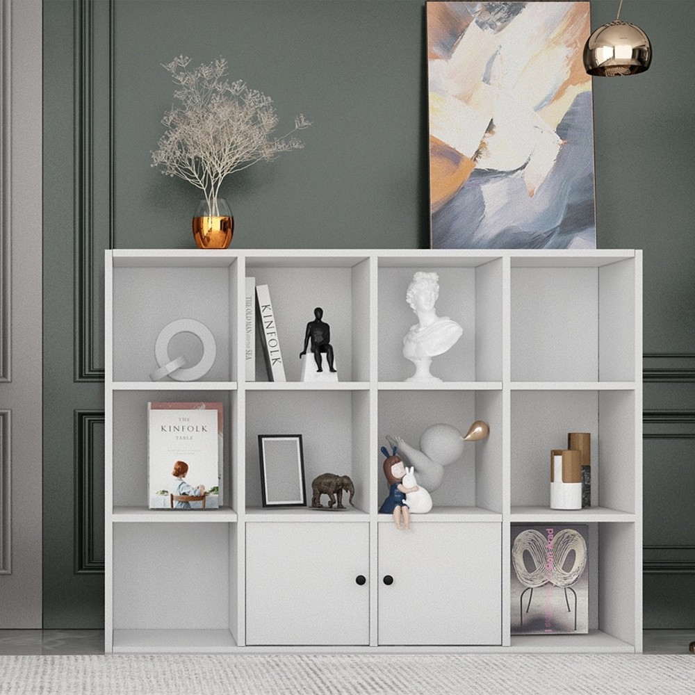 Multifuncional shelf with cabinet, with 2 doors, melamine, white, 129x30xH97 cm