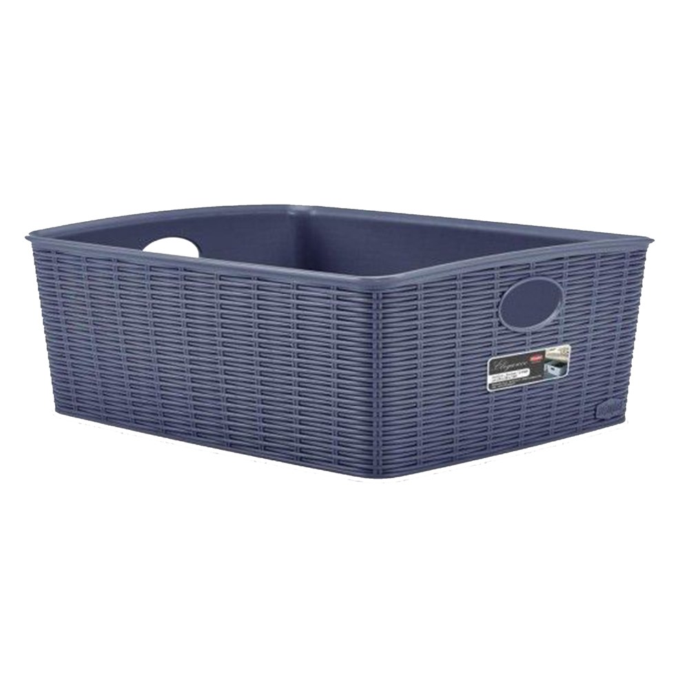 The rectangular basket from the Elegance line, in blue navy color and measuring 36x29.5xH13 cm fits in the bathroom, in the living room or in the kitchen. The basket is an excellent alternative to wicker baskets, which means it has a plastic material, to give the idea of knitting but with a simple and smooth structure. This modern design combined with utility values makes the basket fit perfectly into the arrangement of any interior space.