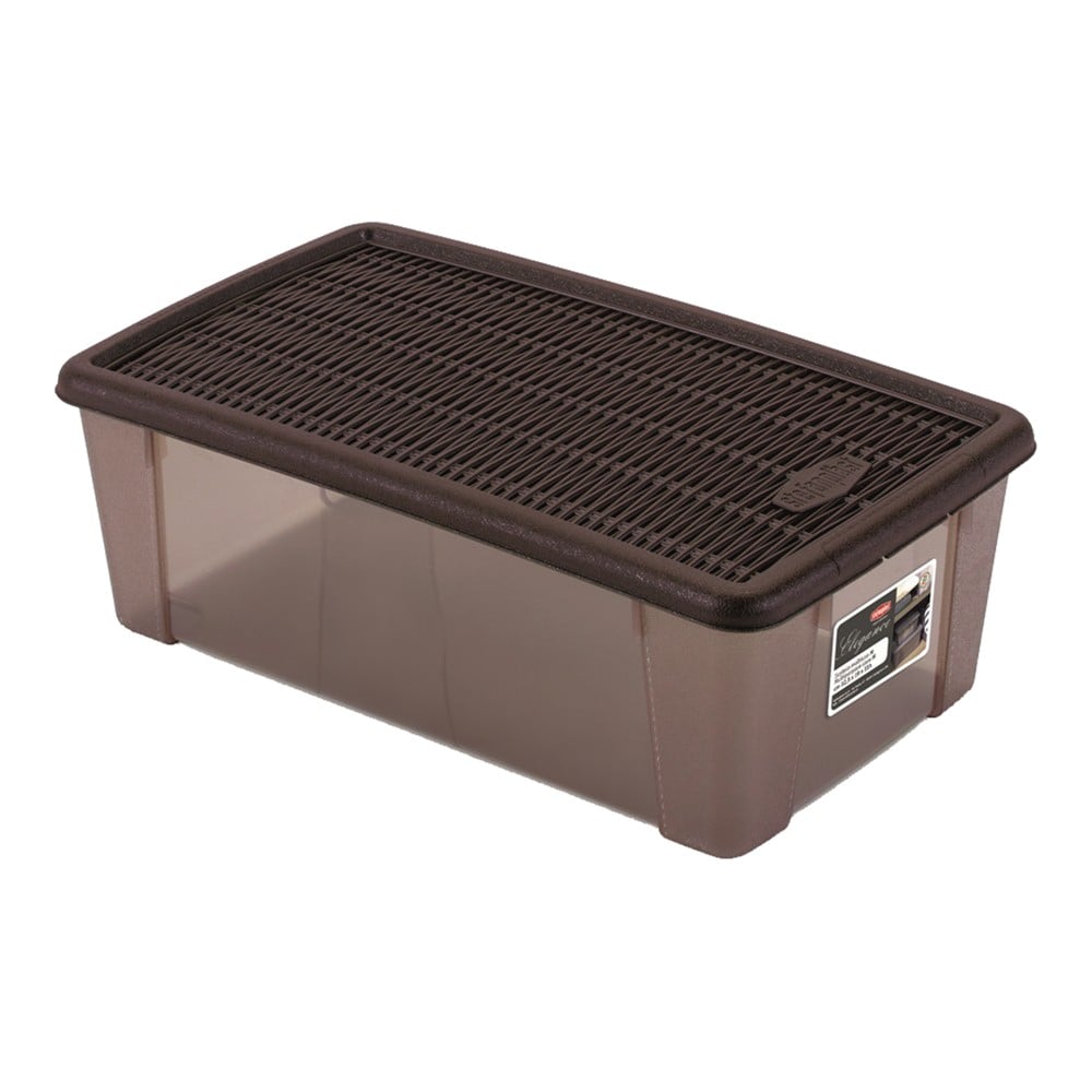 Multifunctional box from the Elegance line, in moka color and size 32.5x19xH11 cm which is ideal for storing children's items, accessories or toys. You can use it at home or in the office. In addition to practicality, this box will give a colorful decor to your home.