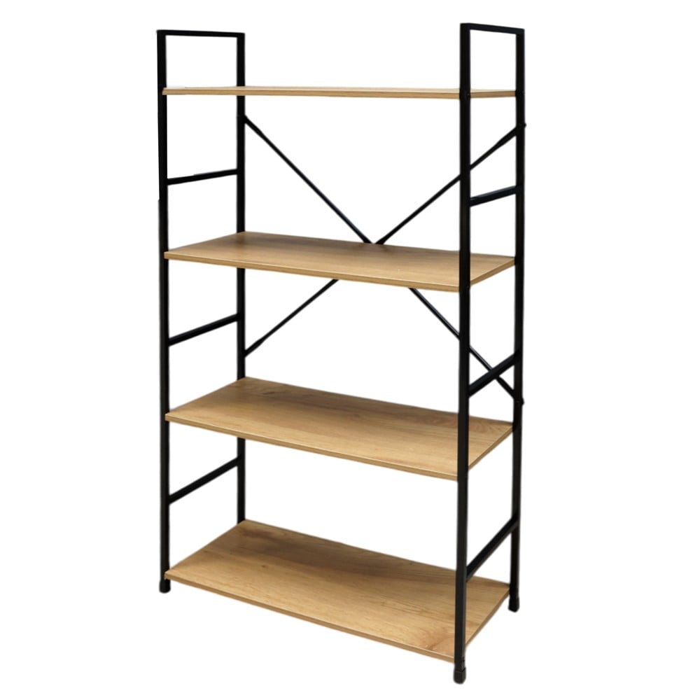 Multifunctional shelf, 3 levels, metal/melamine, black/natural oak, 58.6x23.5xH112cm