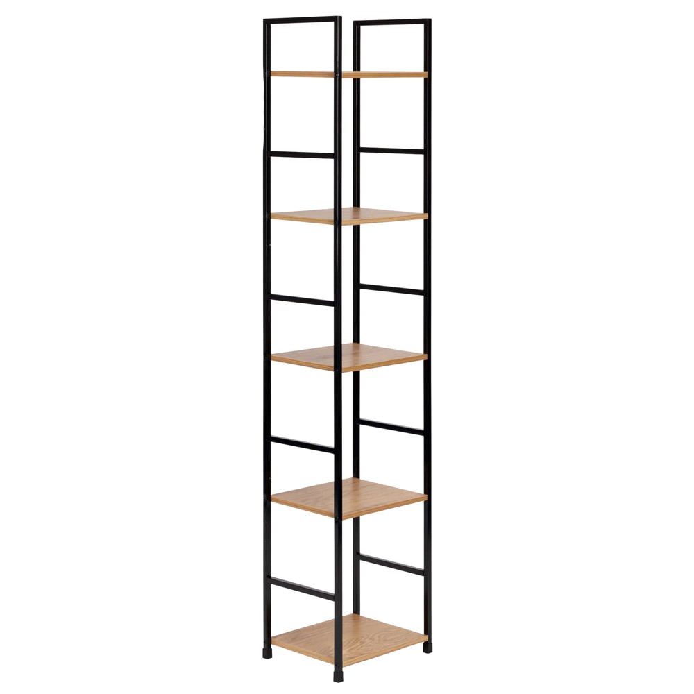 Multifunctional shelf, 5 levels, metal/melamine, black/natural oak, 29.1x23.5xH144cm